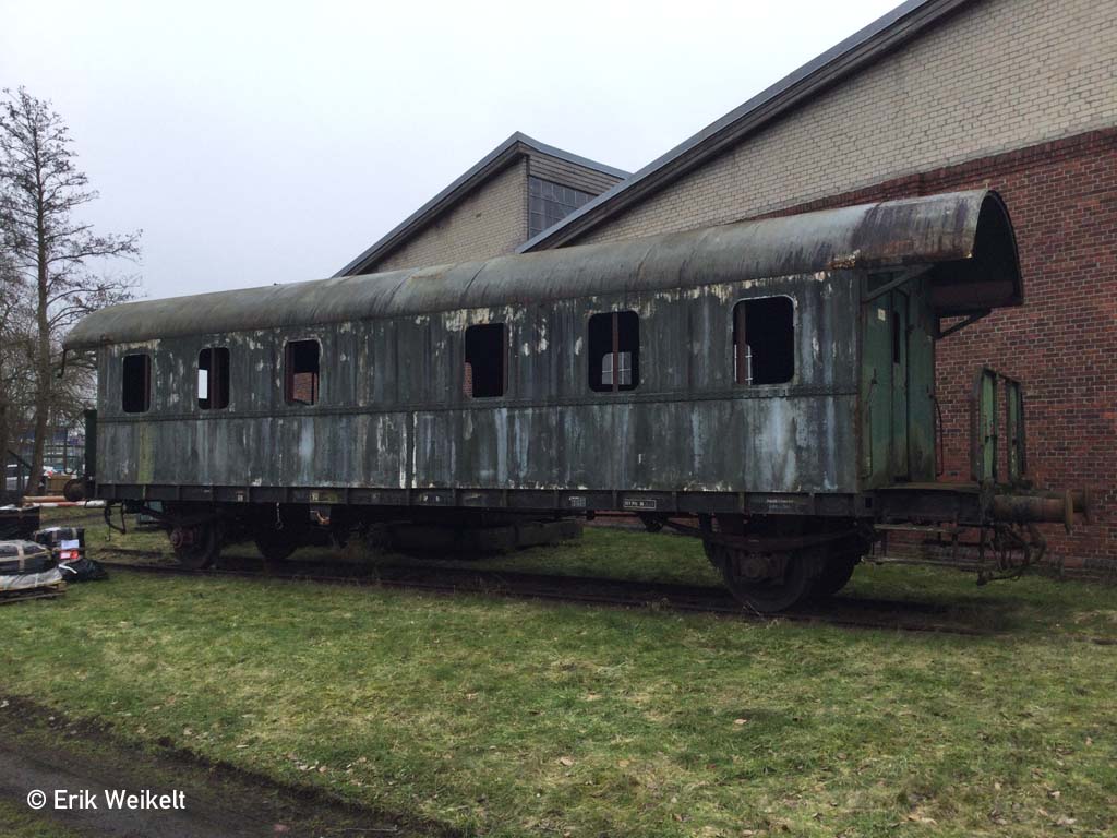 Seit 2010 ist der Wagen bei der Museumseisenbahn Küstenbahn Ostfriesland in Norden beheimatet. Eine MKO-Nummer hat er noch nicht bekommen. Zwischenzeitlich wurde eine Aufarbeitung begonnen, die jedoch unterbrochen wurde. Das Bild zeigt den Wagen am 09.02.2026.