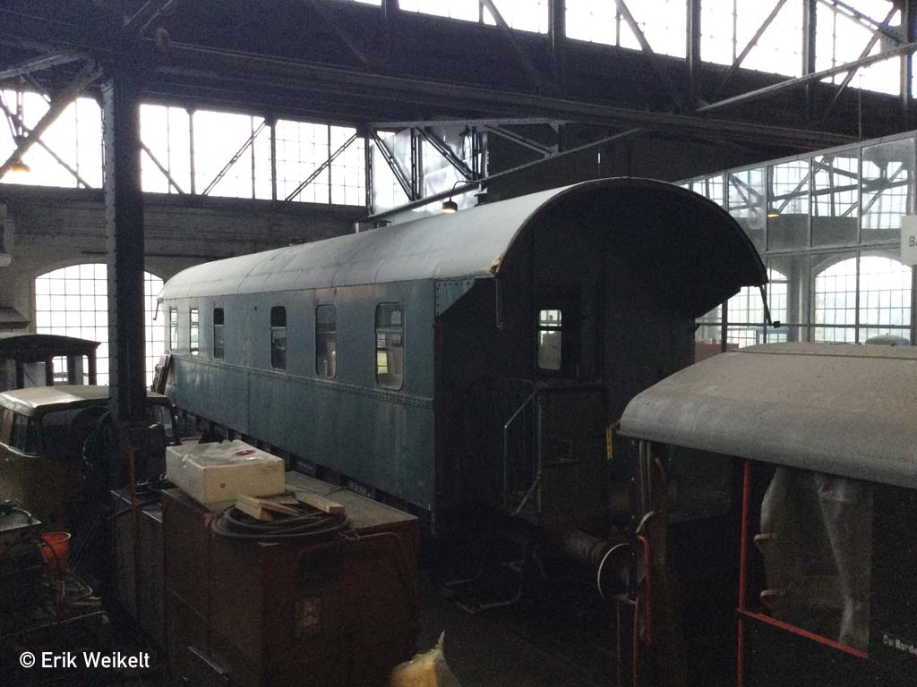 Der BCi-29 36 615 mit der letzten Bauzugwagennummer 60 50 99-19 344-9 bei der Museumsbahn Ammerland-Saterland, wo er als Wagen 1 eingereiht ist. Bei der DR bekam er eine Fensteraufteilung gemäß der Ci-28 ff. Das ehemalige 2. Klasse-Abteil ist jetzt nur noch an den Spanten am Rahmen zu erkennen, es lag auf der im Bild rechten Wagenseite. Weiterhin sieht man auf den Verkleidungsblechen unter den Fenstern in der linken Wagenhälfte noch die originalen Nieten, während die rechte Hälfte wegen der geänderten Fensterteilung neue, geschweißte Bleche bekommen hat.